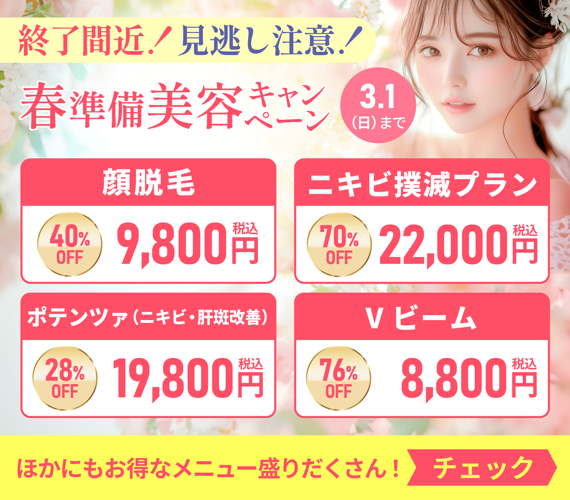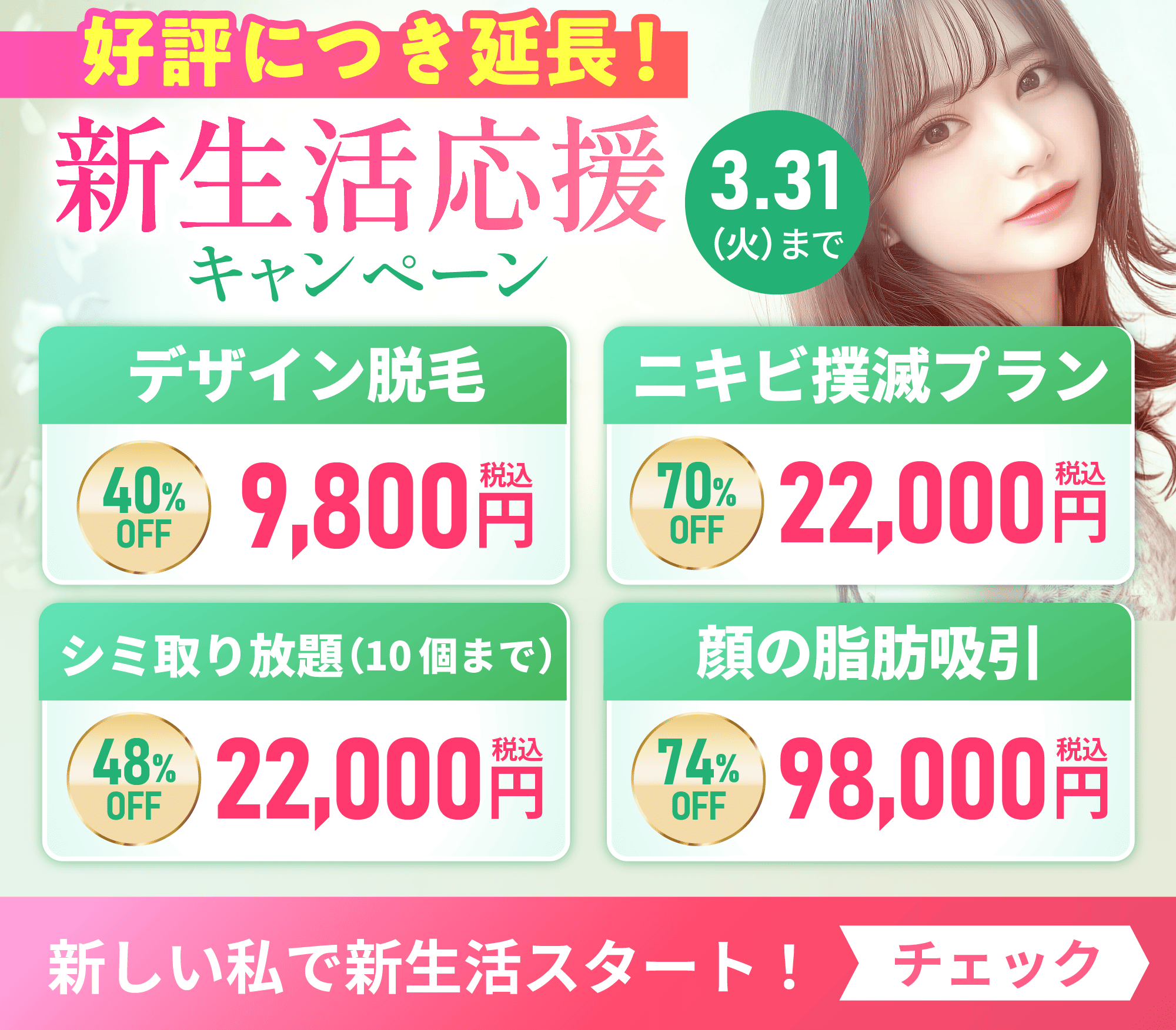 | 説明 | 角質層~表皮上層を剥がれやすくし肌の入れ替えを促進する施術 |
