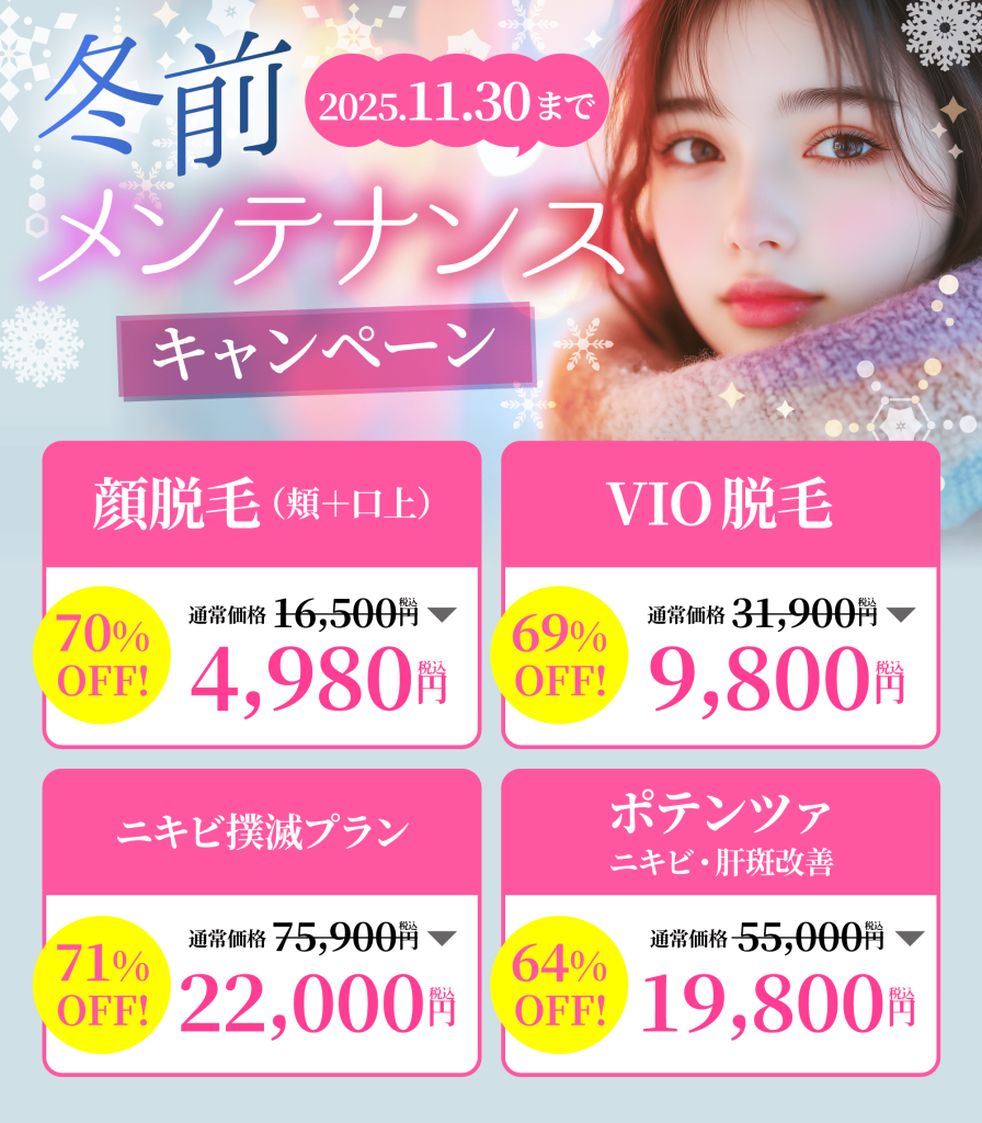 毛穴・ニキビ跡・赤ら顔・小じわなどお肌のお悩みまとめて治療。