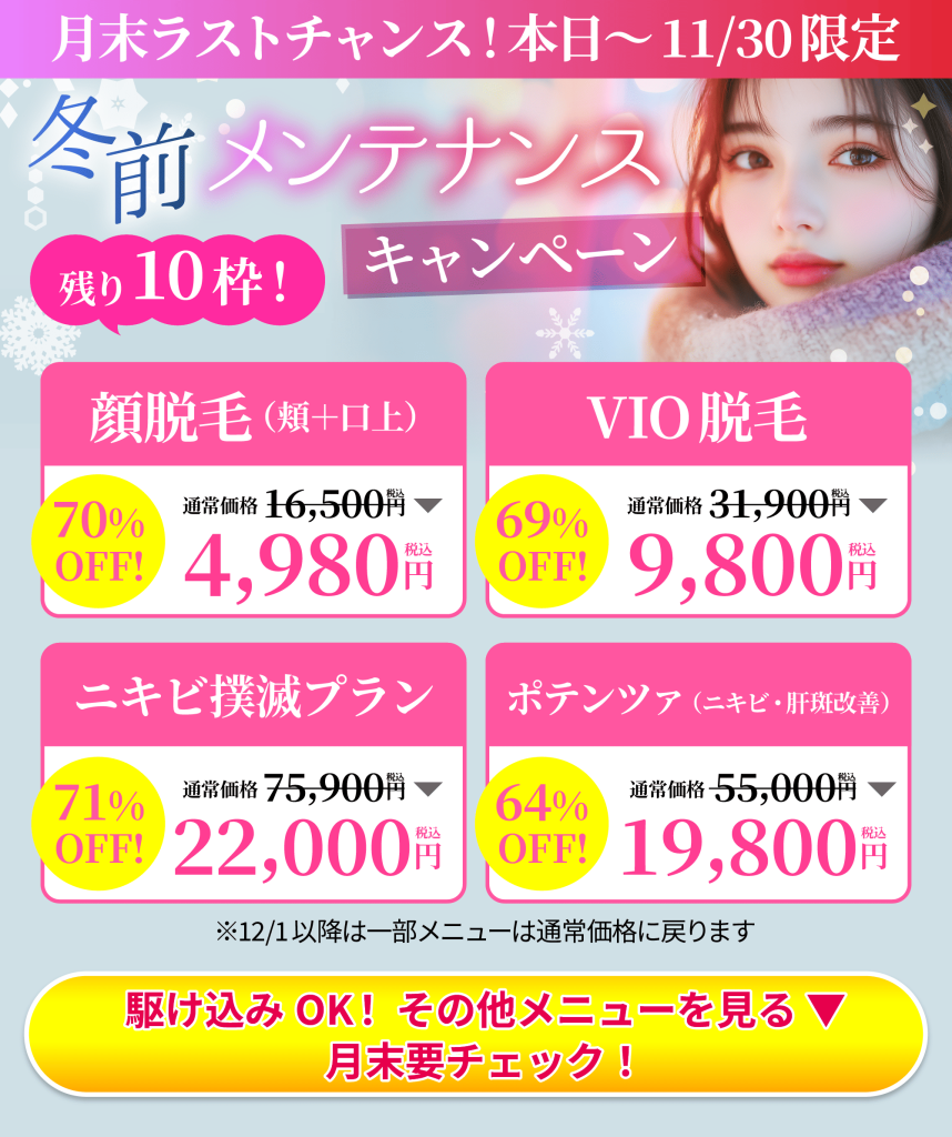 渋クリ人気のケミカルピーリング+イオン導入を手軽に試せるセットプラン!