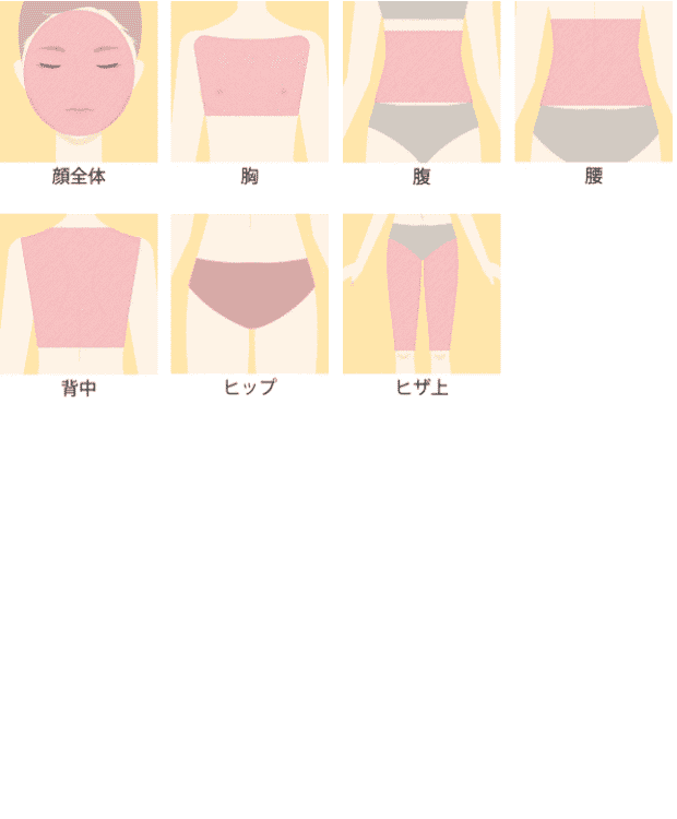 V全処理/ヒザ上/背中/胸部/腹部/腰部/