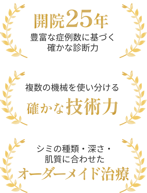 「他院でレーザーしたのに、数年後にまたシミが出てきた」「何度も施術を受けたけど、効果を実感できなかった」「濃いシミと薄いシミが混在していて、何から始めればいいか分からない」「『薄く残る』を指摘されず、『終わり』と言われた」