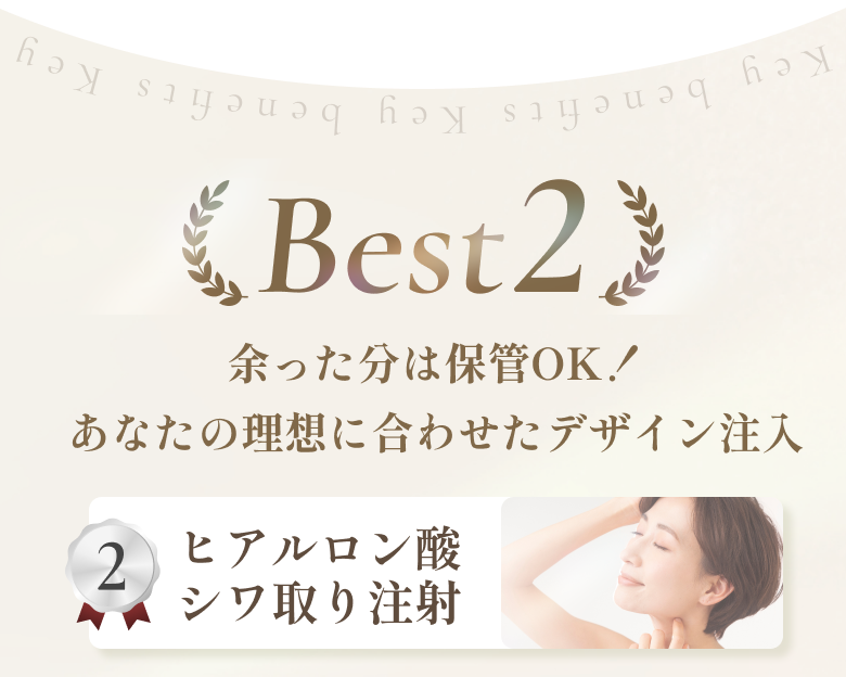 ヒアルロン酸、ボトックス、レーザー機器など、厚生労働省認可または実績のある信頼できる製品のみを使用しています。