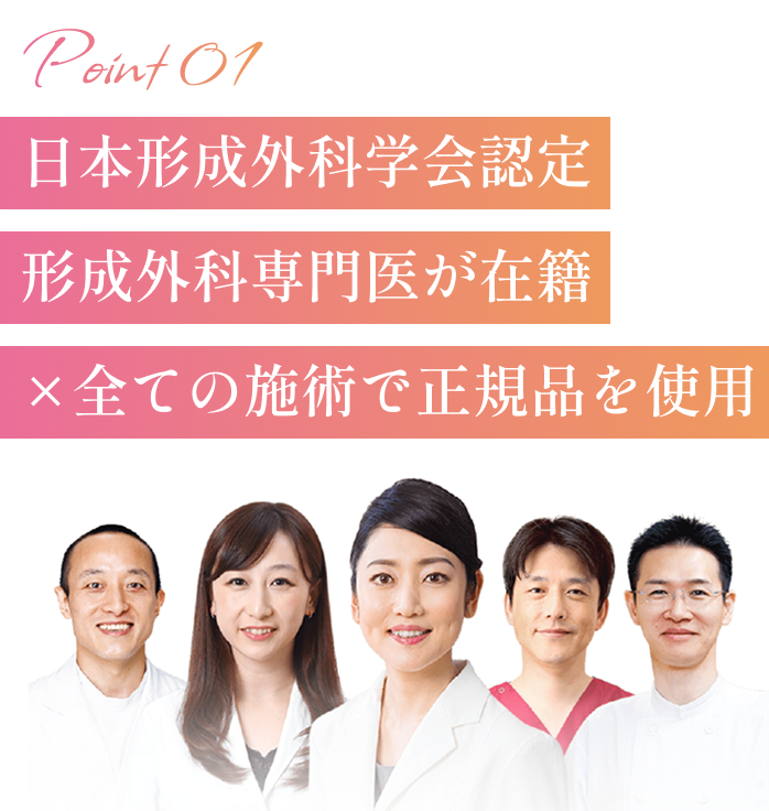 当院には日本形成外科学会認定 形成外科専門医が在籍しており、特に手術が必要な治療は必ず形成外科専門医が対応します。高度な技術と豊富な経験に基づいた、安全で確実な施術をご提供します。