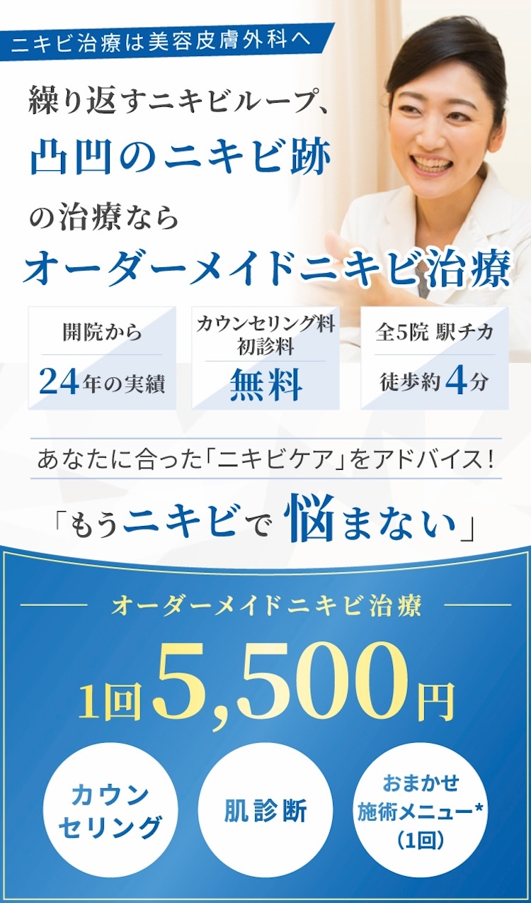 はい、まずはお気軽にご相談ください。最適な治療をご提案いたします。美容皮膚科やニキビ治療、重症ニキビについてに関するお悩みなども、カウンセリングで解決策をお伝えします。