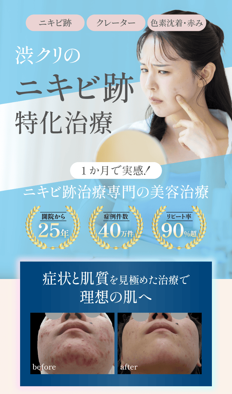 渋クリは開院から24年、お肌の状態に合わせたオーダーメイド治療をご提案。