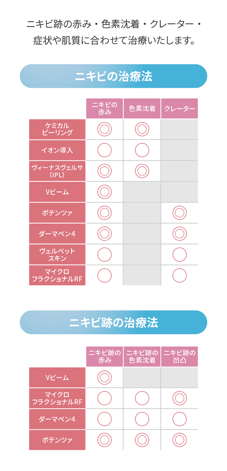 ニキビ治療から始まり美肌にいたるまで“治す”だけではなく健全で綺麗な肌にしていくことを同じ目線で考えます。