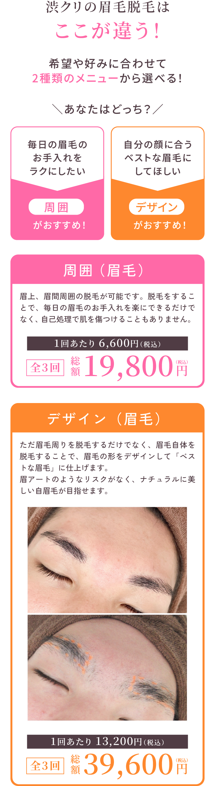 〇脱毛範囲が著しく広い場合には上記料金の1~3割の割増料金を