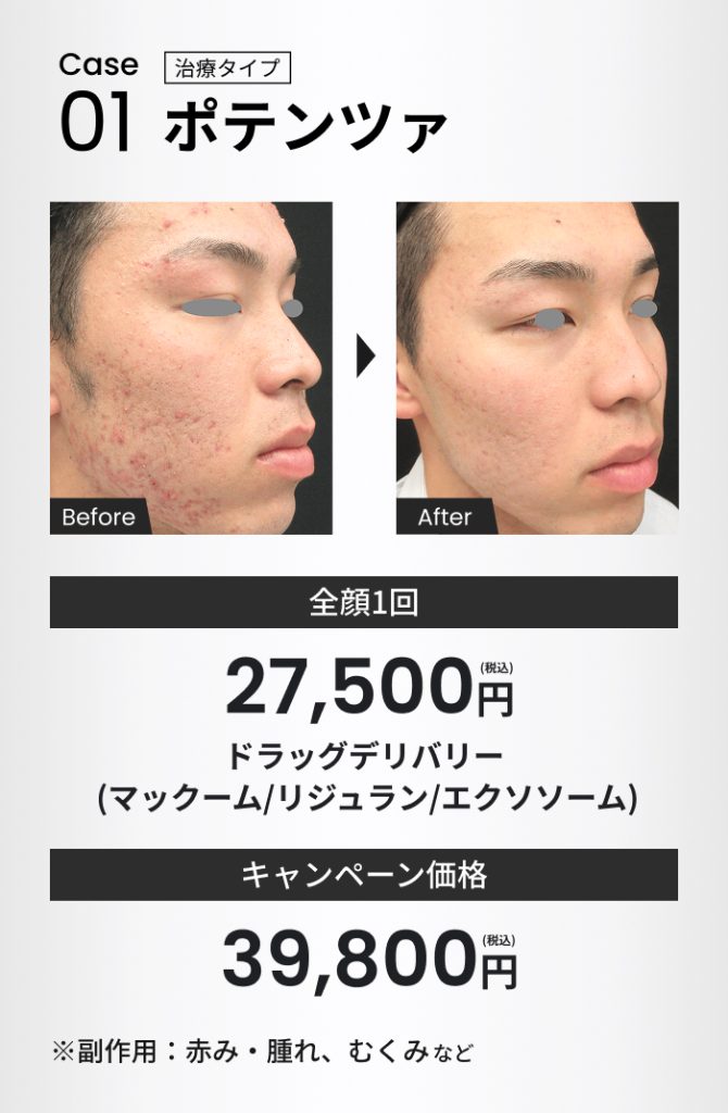 炎症が長引いたり、跡がひどくなってから では、時間も費用もかかります。早めの医療ケアで"肌の基盤"を立て直し、根本から 清潔感を取り戻すことが大切です。
