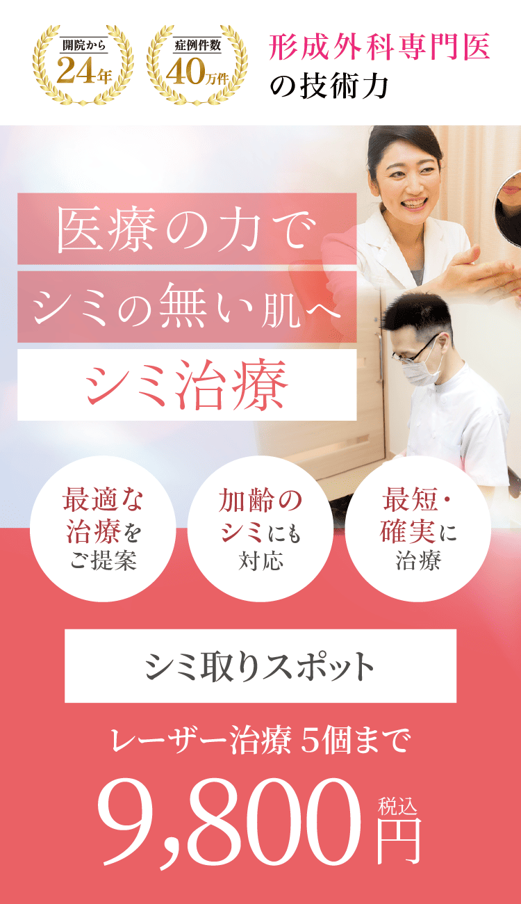レーザーの種類やシミの状態によって痛みは異なり、個人差がありますが、ゴムでパチンとはじく程度の痛みを感じる場合があります。麻酔なしでもできる治療ですが、ご心配な方は塗る麻酔薬や笑気麻酔もございますのでカウンセリング時にご相談ください。