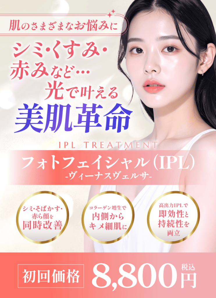 【ヴィーナスヴェルサ(IPL)】料金、効果について– 数種類の特殊な光で異なる肌症状を一気に解消 –