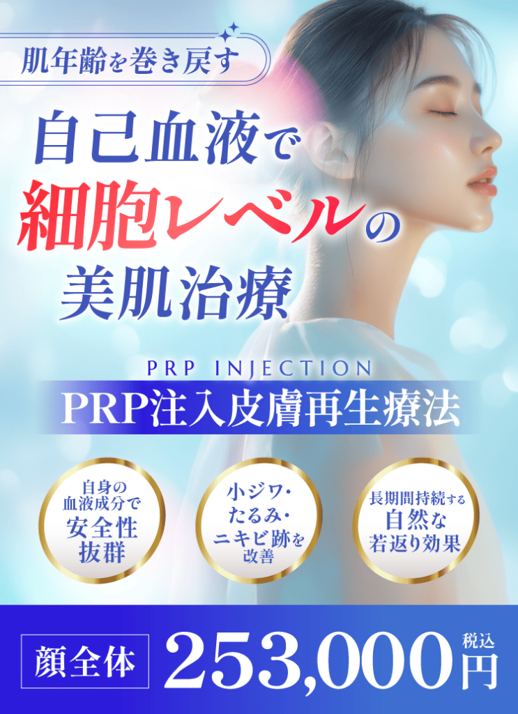 【PRP注入皮膚再生療法(血小板治療)】料金、効果・副作用について– 先端の注入式皮膚再生によるアンチエイジング –
