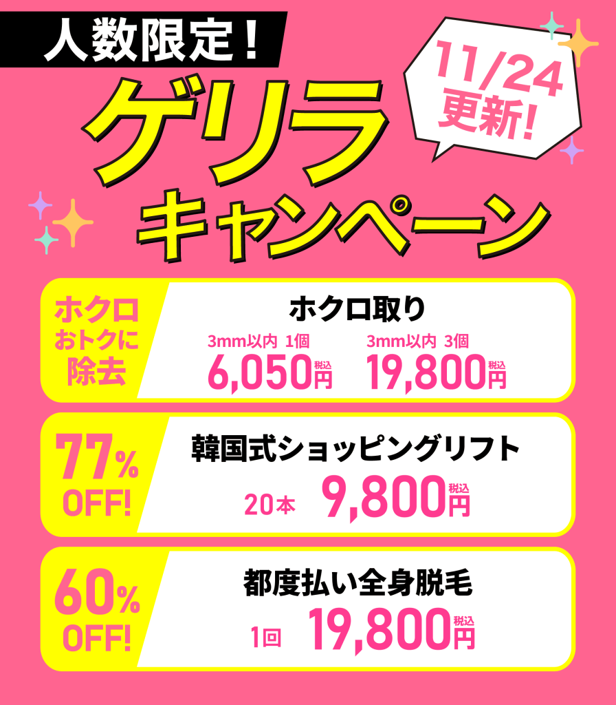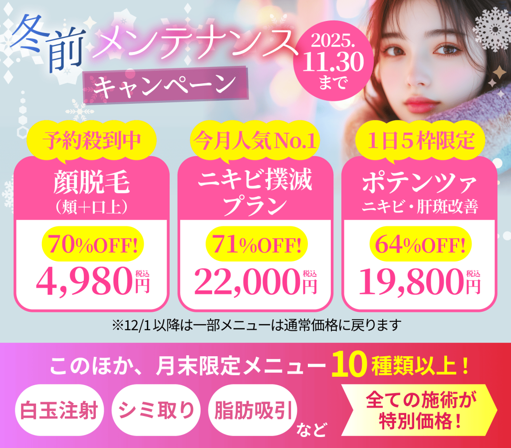 11/24~11/30の期間に、施術まで受けて頂ければ